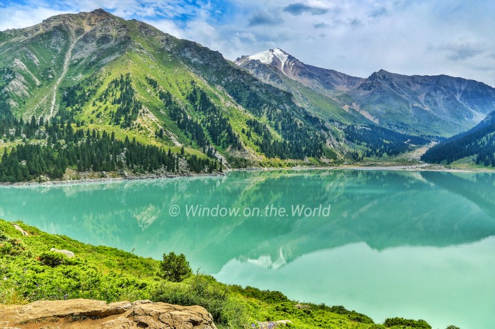 The Big Almaty Lake is a natural alpine reservoir, located 15 KM from Almaty. The lake is nestled in the Trans-ili Alatau Mountains, part of the Tian Shan mountains range. Depending on the time of day/month/year, the lake changes color from light-green to turquoise-blue. The lake is a major source of drinking water for the city of Almaty.