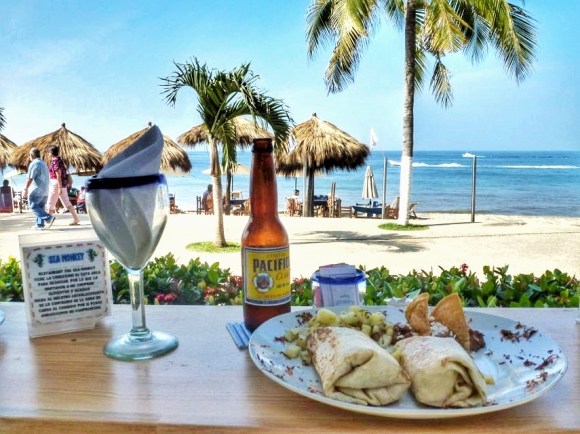2011 – Dec – Puerto Vallarta, Mexico. Authentic Burrito with Pacifico, one of the popular Mexican beer, overlooking Pacific Ocean.