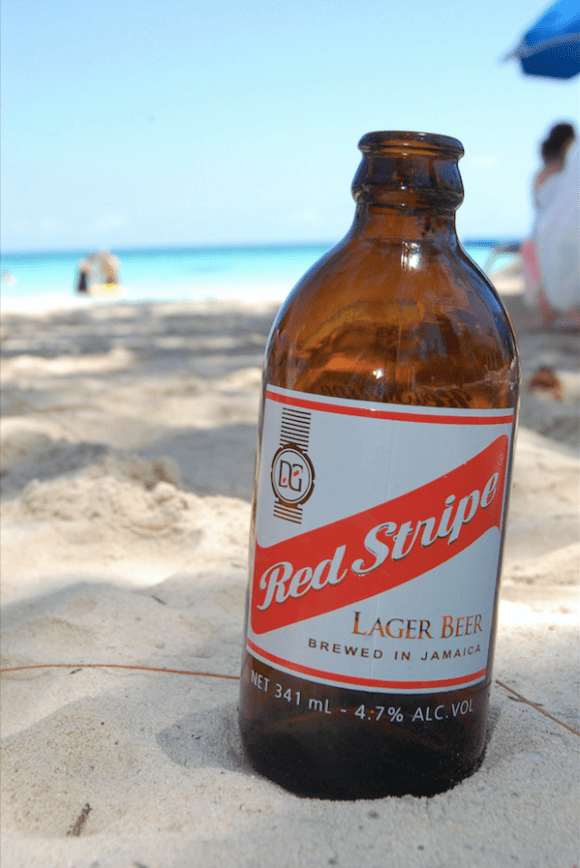 2011 – Aug – Ocho Rios, Jamaica. Enjoying Red Stripe Beer, the most popular beer, brewed on the island since 1928, at the Reggae Beach!