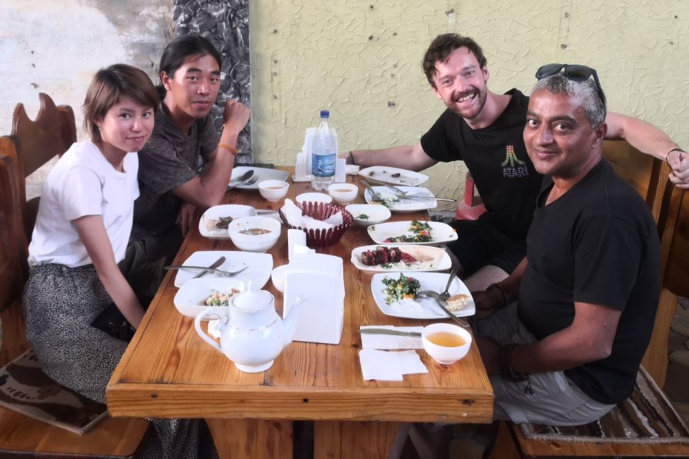 In the capital city after spending 12 days in the Pamirs. An old Manhole Cover with City’s Name in Russian. The statue of Ismail Somoni in Dousti (Friendship) Square, is one of Dushanbe’s most important monument. Ismail Somoni (849-907) was a Samanid Emir (ruler), who is considered the father of the Tajik nation. The Tajik currency, the Somoni, is named after him, and he appears on the 100 Somoni bill.It looks like I missed some kind of street food festival in the city. I saw the sign, but couldn’t find any shop or food stalls. My travel buddies in Wakhan Valley and on The Pamir Highway. I spent 4 days with the Japanese couple and spent 8 days hitchhiking with Paul from U.K..The hostel I stayed was a social place, it was fun sharing stories from the Pamirs and Wakhan Valley over Tajik Vodka.