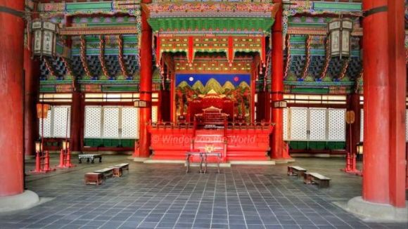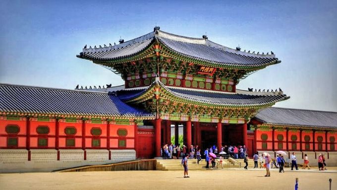 Gwanghwamun, the main and largest gate of Gyeongbokgung Palace. The Gwanghwamun was first constructed in 1395 as the main gate, It got destroyed multiple times during Japanese Imperial rules, and Korean War. The Gwanghwamun underwent a major restoration project since December 2006 and was finished in August 2010.Haetae is a legendary creature in Chinese and Korean mythology. Haetae’s body is muscular, and shaped like a lion and has a horn on its forehead. It lives in the frontier areas of Manchuria. In ancient Korea, Haetae sculptures were used in architecture during the early Joseon dynasty, as their image was believed to be able to protect from natural disasters. Seoul city has officially used Haechi (origin of Haetae) as the symbol of Seoul since 2009.The Heungnyemun Gate is the second inner gate into Gyeongbokgung Palace. The gate is located just past Gwanghwamun Gate, the main gate of the palace.A huge traditional Korean barrel drum with a dragon painted on it.The Geunjeongmun gate of Gyeongbokgung Palace. Geunjeongjeon Hall is the main throne hall of Gyeongbokgung Palace. Originally built in 1395, Geunjeongjeon is now the largest and most formal hall at the palace. Like many other buildings in Korea, the original hall was burnt down during the Japanese occupation in 1592. The building seen today dates back to 1867.The throne hall of Gyeongbokgung Palace.Colorful roof at the Gyeongbokgung Palace.Colorful roof at the Gyeongbokgung Palace.The inner courtyard of the Gyeongbokgung Palace.The inner courtyard of the Gyeongbokgung Palace.The inner courtyard of the Gyeongbokgung Palace.The inner courtyard of the Gyeongbokgung Palace.At the Gyeongbokgung Palace.At the Gyeongbokgung Palace.