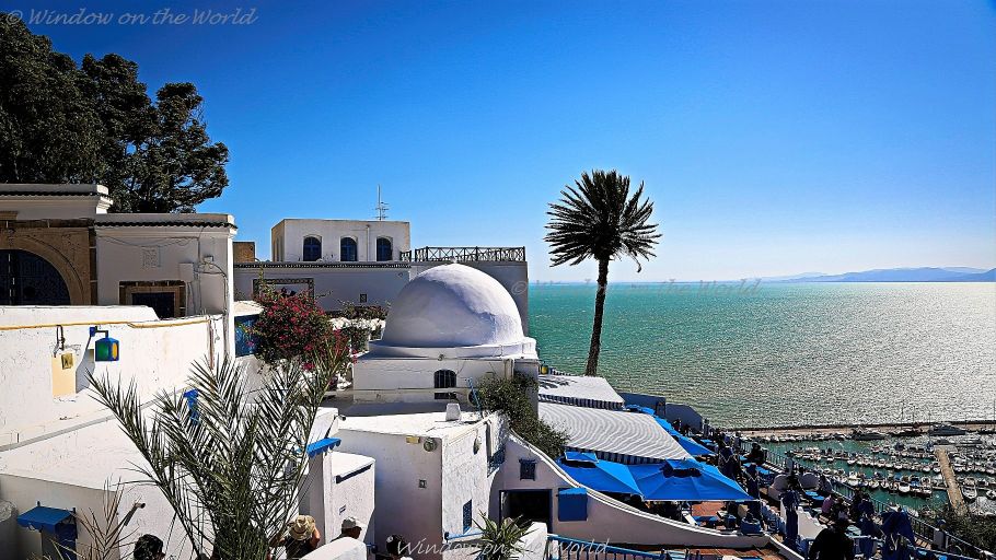 Our local friend drove us to Sidi Bou Said, a picturesque sea side village near Tunis with narrow cobbled streets and white houses with blue roofs and windows, perched on a hill, with breathtaking view of the Mediterranean Sea and the Bay of Tunis. Sidi Bou Said is one of the prettiest town in Tunisia.