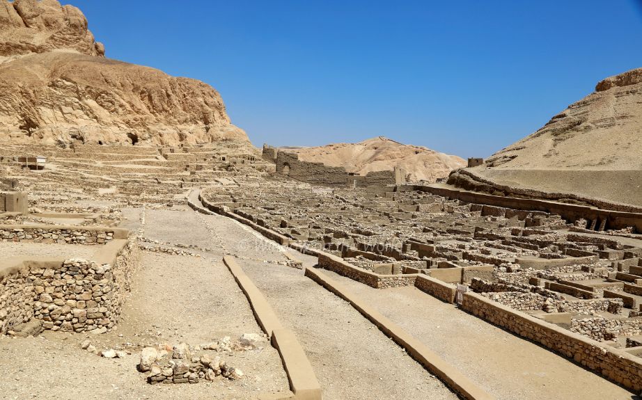 Deir el-Medina, an ancient Egyptian village which was home to the artisans who worked on the tombs in the Valley of the Kings during the 18th to 20th dynasties of the New Kingdom of Egypt (ca. 1550–1080 BC)
