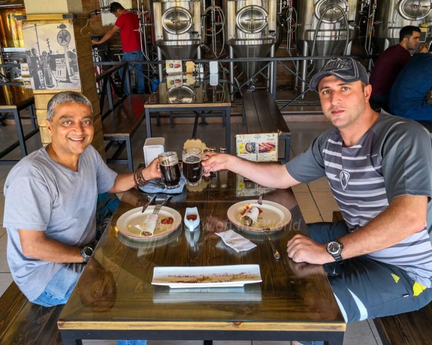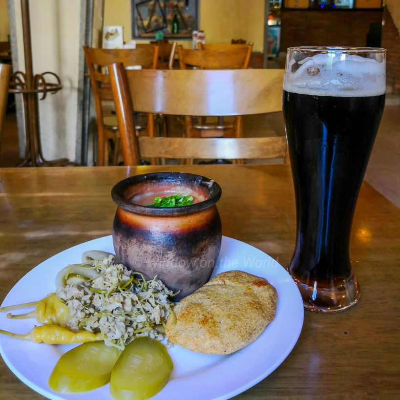 Churchkhela, a traditional Georgian cuisine candle-shaped candy. The main ingredients are grape must, nuts, and flour. Almonds, walnuts, hazelnuts, and chocolate and sometimes raisins are threaded onto a string, dipped in thickened grape juice or fruit juices and dried in the shape of a sausage.Khachapuri, a traditional Georgian dish of cheese-filled bread. Some places you can get some spicy vegetable-filled bread too. The Green drink is Tarkhuna, a Georgian carbonated soft drink that is flavored with tarragon or woodruff. It was first created in Georgia in 1889.Khinkali is a very famous dish in Georgia, consumed on a regular basis. It’s the first dish every Georgian introduces to their foreign friends. Khinkali is a meat dumpling. The dumplings are boiled and not steamed. You can also get vegetarian Khinkali filled with Cheese, Potatoes and Vegetables. The twisted knobs of the dough are called kuchi (stomach), it’s a tough part of the dish and is usually not eaten. It’s mostly used to count how many Khinkali a person ate.Lobio is a traditional Georgian dish of various kinds of prepared beans, containing coriander, walnuts, garlic and onion. My favorite Vegetarian dish in Georgia. Needless to say, the homebrewed draft beer was refreshing too!Though Georgia is popular for Wine, Tbilisi has many micro-breweries. My local friend took me to this local brewery for fresh beer and some good Georgian traditional food.With my local Georgian friend at a brewery.The Chronicle of Georgia, a monument located near Tbilisi sea. It was created by Zurab Tsereteli in 1985 but was never fully finished. The monument chronicles the history of Georgia. The monument sits at the top of a large set of stairs. There are 16 pillars that are between 30–35 meters tall and the top half features kings, queens and heroes while the bottom part depict stories from the life of Christ. Zoom in, you will see some people walking around, and will give you some Idea of how huge this structure is. It’s look like Tbilisi’s own version of the Stonehenge.The grapevine cross of St. NinoTbilisi sea, a reservoir that provides water supply to the city of Tbilisi.