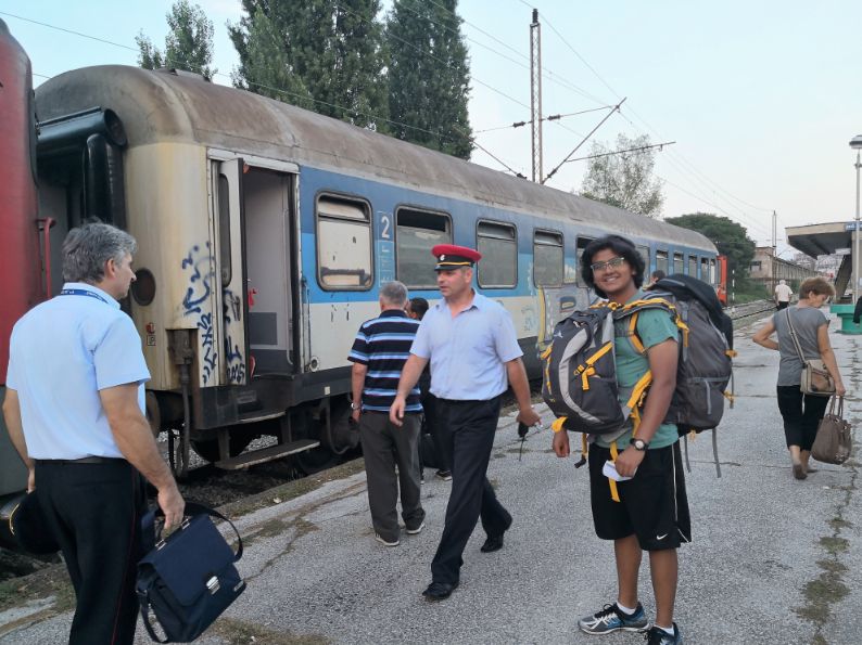 Old steam locomotives on a side track near Nis Railway Station.Old steam locomotives on a side track near Nis Railway Station.Our first ride in Serbian Railway, the communist era train had only one car (compartment)We arrived during the Leskovac Grill Festival, a yearly grilled-meat festival organised in Leskovac. During the event, the main boulevard is closed for traffic, night and day for five days, and many grill-stands are constructed to create temporary restaurants.Live entertainment at the Leskovac Grill FestivalTwo Vegetarian backpackers at the Leskovac Grill Festival 🙂Drinking beer with my Host at his home.Enjoying Serbian Hospitality with the host family; Raul with our host and his parents, our host’s mom prepared vegetarian breakfast for us, such a wonderful family. This was Raul’s first experience with CouchSurfing.Raul sharing his Guitar experience with our local host family.