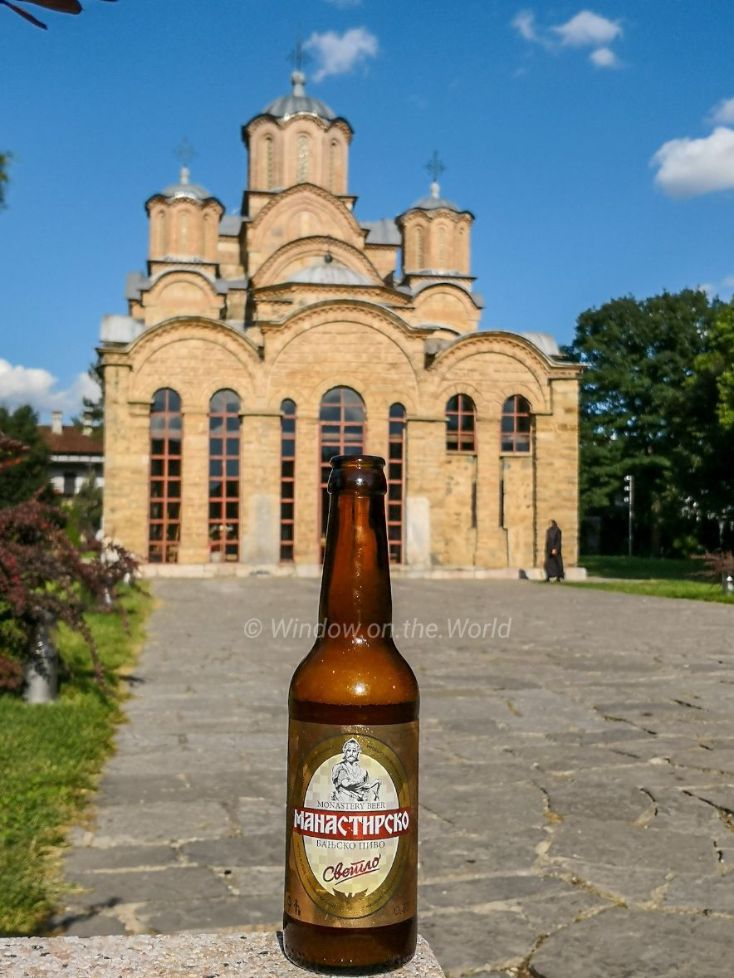 Front view of the Gračanica (Grachanista) Monastery, built during 1313–21, a UNESCO World Heritage site.Side view of the Gračanica (Grachanista) Monastery, built during 1313–21, a UNESCO World Heritage site. The monastery is located in Gračanica, a Serbian enclave, 10 km from Pristina, the capital city. Interior of the Gračanica (Grachanitsa) Monastery; Frescoes are from 1321. On the right, before the entrance, is the ktetor (founder) fresco with Stefan Milutin holding a model of the church, ca. 1321.A Souvenir Shop at the Gračanica (Grachanitsa) Monastery; all monasteries sell alcoholic drinks brewed/made by monks. This shop was selling Rakija, Wine and Beer, and was allowed to drink on premise. A Monastery beer, brewed by monks at the Serbian Monastery.With Raul at the Gračanica Monastery (built in 1321), a UNESCO World Heritage site.A small chapel in the village of Gračanica.After a long day of travel, Raul and I are enjoying Grembeer, a German beer, brewed in Kosovo. Exploring Pristina’s nightlife and having drinks with Raul, a Local Kosovar friend and Gujju-American friend, to whom I was meeting for the third time in three different countries (Romania, Bulgaria and Kosovo), will meet her again one more time in Albania.