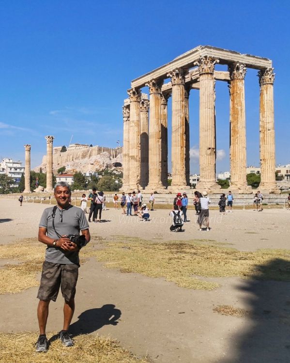 Welcome to Athens, a beautiful Manhole Cover.Welcome to Athens! The Acropolis in the background.Early Morning Flag Raising Ceremony, a traditional military ceremony at the Acropolis.The Acropolis – the ancient “high city” of Athens, crowned by marble temples sacred to the city’s goddess Athena. A UNESCO World Heritage Site.The Parthenon, built in 438 BC, a former temple on the Athenian Acropolis, dedicated to the goddess Athena, whom the people of Athens considered their patron. During Roman rules, during 6th century AD, the Parthenon was converted into a Christian church, after the Ottoman conquest, during 15th century, it was turned into a mosque. The Parthenon is regarded as an enduring symbol of Ancient Greece, Athenian democracy and Western civilization, and one of the world’s greatest cultural monuments. It is the most important surviving building of Classical Greece.The Erechtheion or Erechtheum, an ancient Greek temple, built between 421 and 406 BC, on the Acropolis of Athens which was dedicated to both Athena and Poseidon.The famous “Porch of the Maidens”, with six draped female figures (caryatids) as supporting columns of the Erechtheion, an ancient Greek temple, built between 421 and 406 BC, on the Acropolis of Athens. All six figures are replicas; one of those original six figures, removed by Lord Elgin in the early 19th century, is now in the British Museum in London, the Acropolis Museum holds the other five figures. The Temple of Athena Nike, a temple on the Acropolis of Athens, dedicated to the goddess Athena Nike. Built around 420 BC, the temple is the earliest fully Ionic temple on the Acropolis.The Odeon of Herodes Atticus (also called Herodeion), a stone Roman theater, built in 161 AD, located on the southwest slope of the Acropolis of Athens. The theater was restored in the 1950s, since then it has been the main venue of the Athens Festival each year.Another view of the Odeon of Herodes Atticus, a stone Roman theater, built in 161 AD.We bought tickets a day before and were first in a line next morning to enter the Acropolis. We had entire place for few of us for may be 15 minutes, before thousands of tourists arrived.A view of Mount Lycabettus from Acropolis. At 300 meters (908 feet) above sea level, its summit is the highest point in Athens.The Mediterranean Sea and The Philopappos Monument, an ancient Greek mausoleum and monument dedicated to Philopappus, located on Mouseion Hill. It was from this hill that the Venetians launched the shell that destroyed the Parthenon roof in 1687.The Theater of Dionysus, an ancient theater on the south slope of the Acropolis, built as part of the sanctuary of Dionysus the Liberator. The first orchestra terrace was constructed on the site around the sixth century BC, the theater reached its fullest extent in the fourth century BC when it would have had a capacity of up to 17,000.Temple of Olympic Zeus, a view from Acropolis.The Arch of Hadrian, or Hadrian’s Gate, is a monumental gateway spanning an ancient road from the center of Athens to the complex of structures that included the Temple of Olympian Zeus. The arch was built in 132 AD to celebrate arrival of the Roman emperor Hadrian to the city, on the occasion of the dedication of the nearby Temple of Olympian Zeus complex.The Temple of Olympian Zeus, a former colossal temple at the center of Athens. Construction began in the 6th century BC, but it was not completed until the reign of the Roman Emperor Hadrian in the 2nd century AD, some 638 years after the project had begun. During the Roman period the temple, which included 104 colossal columns, was renowned as the largest temple in Greece and housed one of the largest statues in the ancient world.The Temple of Olympian Zeus with Acropolis of Athens in the backdrop. The Temple of Hephaestus or Hephaisteion, a well-preserved Greek temple in the Ancient Agora, constructed between 449-415 BC. From the 7th century until 1834, it served as the Greek Orthodox church.The Tower of the Winds or the Horologion of Andronikos, an octagonal clocktower in the Roman Agora that functioned as a horologion or “timepiece”. It is considered the world’s first meteorological station. The structure features a combination of sundials, a water clock, and a wind vane. It was built by Andronikos of Cyrrhus around 50 BC.The Stoa of Attalos, a stoa (covered walkway) in the Agora of Athens, was originally built during 159-138 BC. The current building was reconstructed in 1952–1956 and houses the Museum of the Ancient Agora.Byzantine Greek Orthodox Church near the ancient Agora.Another view of Acropolis from Ancient Agora, Roman Forum of Athens.The Acropolis after dark.At the The Temple of Olympian Zeus, with Acropolis of Athens in the backdrop.Delicious Greek Yogurt for breakfast. After a full day of walking, enjoying Mythos, a Greek lager beer.