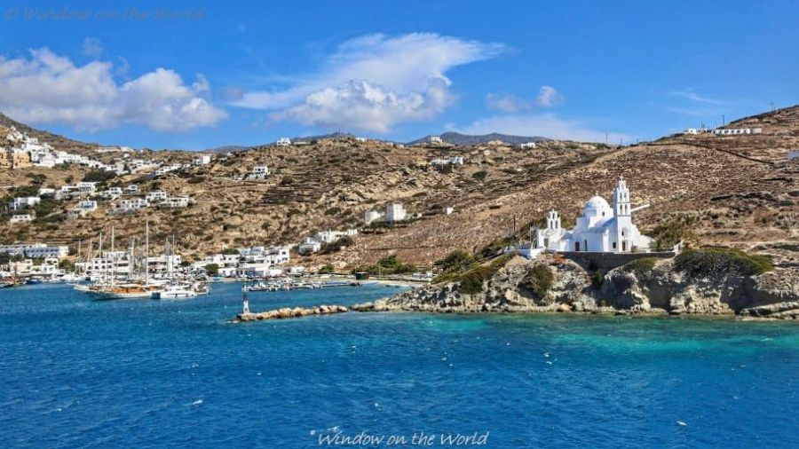 Port of Ios Island.A beautiful White Greek Orthodox church on Ios Island. One of many Uninhabited islands of Greece.A Remote Light House on the island.A Beautiful Church by the Aegean Sea. Naxos Island, the largest of the Cyclades.