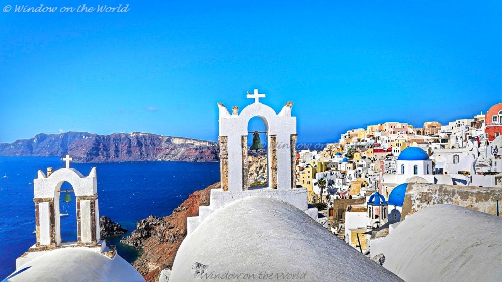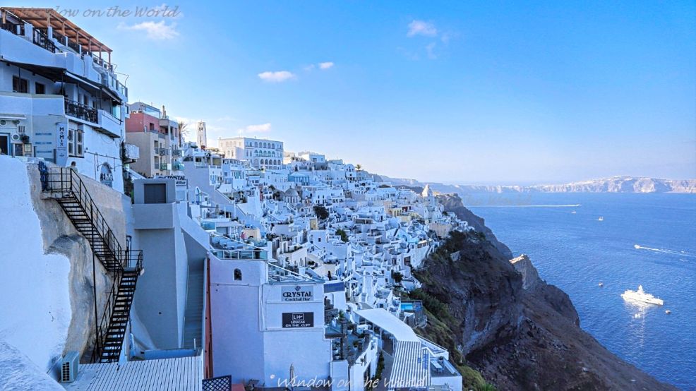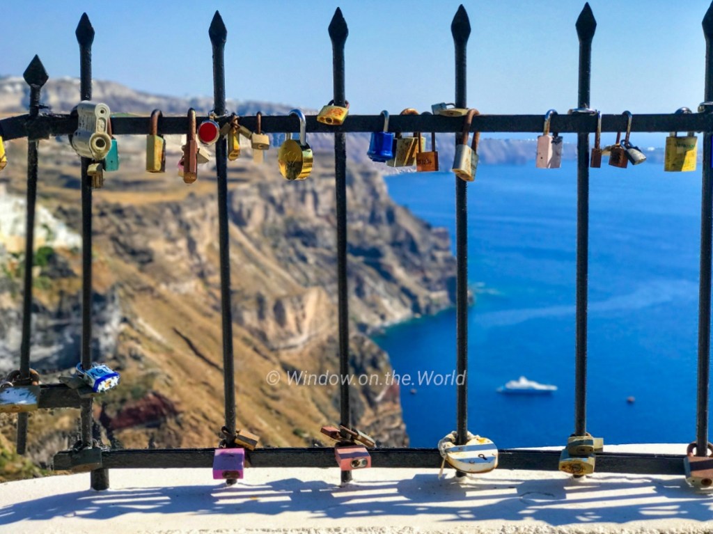 Santorini Island: The towns of Fira, Ia (also known as Oia), and Thirasis cling to the steep cliffs facing into the caldera bay.Santorini: Town of Oia above the caldera.Cruise ships holding position in the caldera near the Old Port.Fira (also called Thera or Thira) is the main town of Santorini island.Rush hour traffic in Fira, the main town of Santorini Island.At the Town of FiraFira town.Fira town at Night.The towns of Fira, and Thirasis, a view from town of Ia (also known as Oia)The towns of Fira, and Thirasis, a view from town of Ia (also known as Oia), after darkTown of Ia (Oia spelling in Greek) is a picturesque town beloved by artists and the tourists alike. It is built on the steep slope of the caldera and the houses and restaurants are built into niches carved into the caldera on the seaward side. There are narrow passageways and a central square.Western Oia where every inch seems to be occupied by some villa.Beautiful view from the town of Oia.Western Oia where every inch seems to be occupied by some villa.Pre-Wedding photo-shoot at town of Oia.A beautiful view from Western Oia where every inch seems to be occupied by some villa.A Greek orthodox church in town of Oia. Handmade mouth blown Aqua Blue color Glassware for sale in the town of Oia.Beautiful Sunset over Aegean Sea from the town of Oia.Beautiful Sunset over Aegean Sea from the town of Oia.Aegean Sea from the town of Oia after dark.The town of Oia after dark.The Greet Orthodox Church after dark in the town of Oia.Eastern side of Santorini Island.Eastern side of Santorini Island.View of the village Oia from the byzantine castle ruins.Love Locks in the Town of Fira.Ouzo of Plomari, my favorite after dinner anise-flavored liquor!