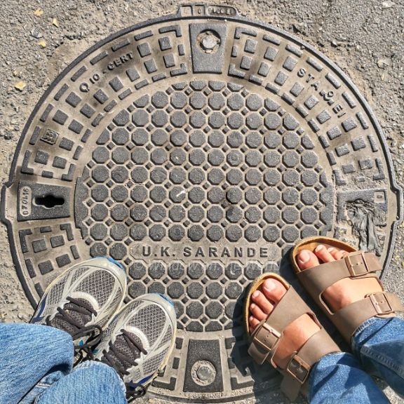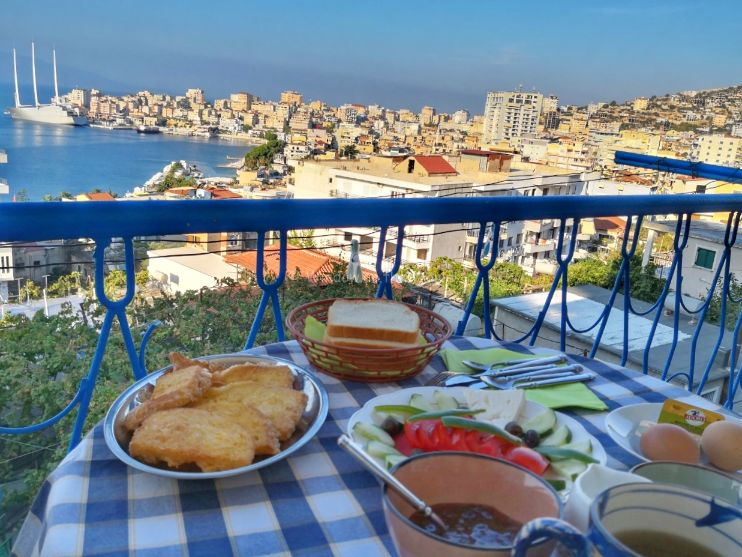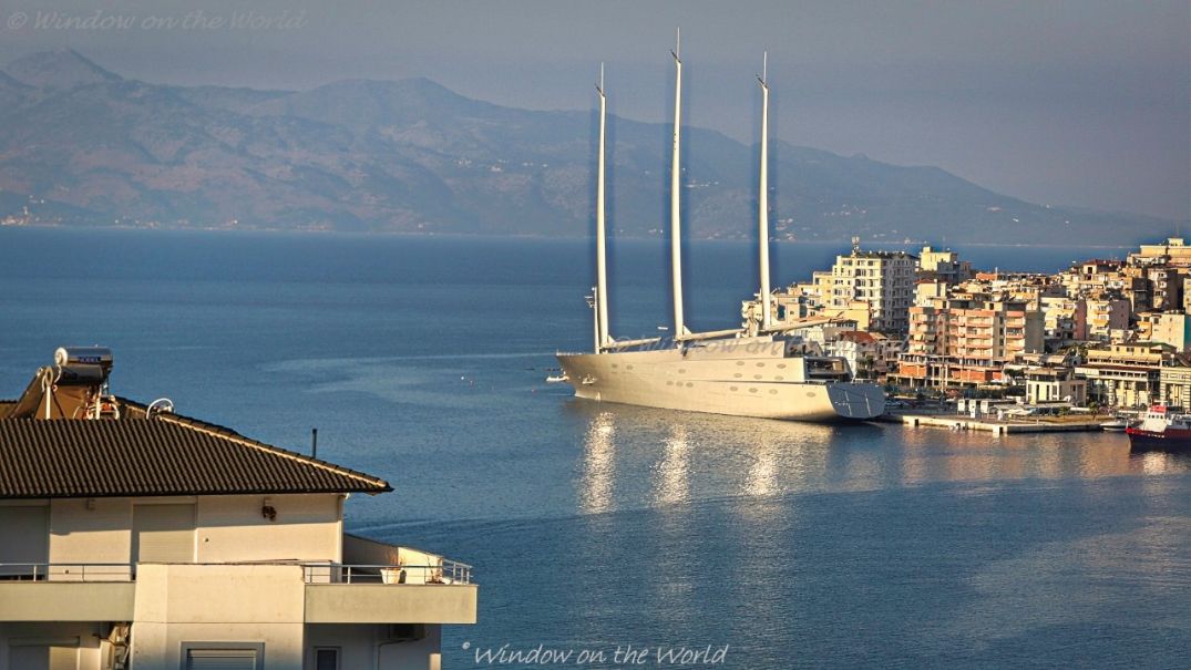 Welcome to Albania! Welcome to Saranda (Sarandë)! Welcome to the Albanian Riviera! A Simple Manhole Cover. A beautiful view from our Hostel Room!$450 Million Sailing Yacht A, decided to visit us in Sarandë. More information about that Yacht at: https://en.wikipedia.org/wiki/A_(sailing_yacht)Delicious Breakfast with a breathtaking view of the Albanian Riviera and $450 Million Sailing Yacht A.A Fast ferry from Corfu(Greece) to Saranda(Albania) on the Ionian Sea with a very beautiful sunset in the backdrop.