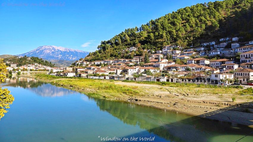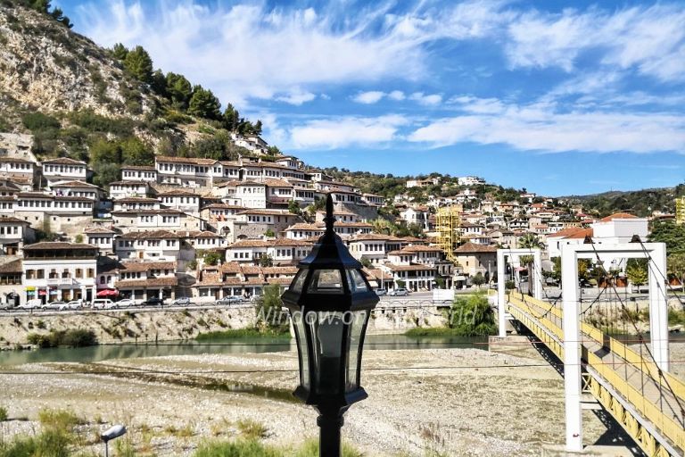 Berat is a city, founded in the 6th-5th century B.C. as an Illyrian settlement on the Osum River, surrounded by mountains and hills, known for its white Ottoman houses with large square windows that almost resemble eyes, earning it the nickname “City of a Thousand Windows”.
