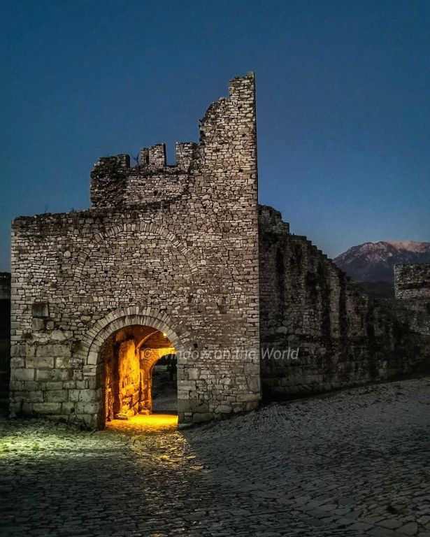 Two out of three neighborhoods of Berat; the Kala (Castle) and Mangalemi, below the castle, the facades of the houses, with windows that seem to stand above each other. Across the Osum River lies the Gorica, the third neighborhood of old city of Berat, whose houses face those of Mangalemi.The arched bridge of Gorica, built in 1780, a beautiful architectural monument links Gorica with Mangalemi.Mangalemi neighborhood, popular as the city of thousand Windows.The Osum River and the Gorica neighborhood.Entrance the to Castle, the Kala neighborhood.The old fortified town is still inhabited by townspeople.The old fortified town is still inhabited by townspeople.The Holy Trinity Church within the Berat Castle.The Holy Trinity Church within the Berat Castle overlooking the Gorica neighborhood and the Osum River.The Berat castle after dark.The Berat castle after dark.The Berat castle after dark.Beautiful building of the Albanian University in Berat. We visited Berat in Sept 2018. According to Wikipedia; As of 2019, the University is closed and is being turned into a hotel.Raul is taking picture of beautifully arched Gorica bridge reflecting in the Osum River.