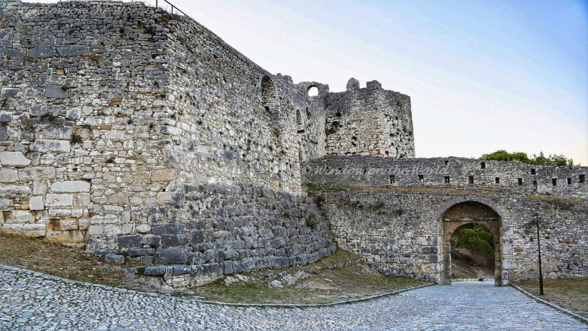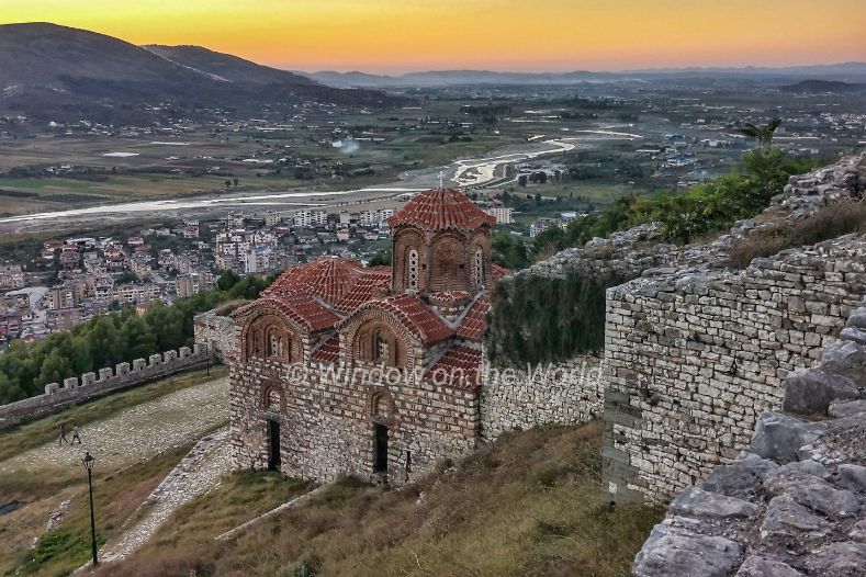 On a hilltop, Berat Castle comprises an old fortified city still inhabited by townspeople. Within its walls are 18th-century houses, Byzantine churches, Mosques and a National Museum, with Christian icons.