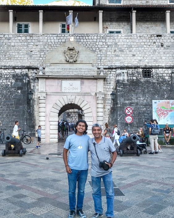 Welcome to Montenegro! Welcome to Kotor! Sea Gate, the main entrance to the old walled city of Kotor. Located next to the harbor, it has the date of the liberation from WW II. It enters to a beautiful square with the clock tower. I took this picture very early morning before Cruise-Ship load of day-trippers arrive in the town.A beautiful Clock tower from the Sea Gate, the main entrance to the old walled city of KotorA beautiful square in walled city of Kotor, with a clock tower. I took this picture very early morning before Cruise-Ship load of day-trippers arrive in the town.The Cathedral of Saint Tryphon, originally built in 1166 in honor of Saint Tryphon, the patron and protector of the city, on the same site where an older church from 809 had already existed. The cathedral was seriously damaged and carefully restored after the 1667 and 1979 earthquakes.The Church of St. Nicholas, a Serbian Orthodox church built from 1902 to 1909 on the place of an earlier Orthodox Church from 1810, which was burnt down in fire on the Christmas Eve in 1896.St Luke’s church represents the history of Croat-Serb relations in Kotor. It was constructed in 1195 as a Catholic church, but from 1657 until 1812 Catholic and Orthodox altars stood side by side, with each faith taking turns to hold services here. It was then gifted to the Orthodox Church.St Luke’s church, constructed in 1195 one of the oldest church in the old city of Kotor, in the back is the Church of St. Nicholas, a Serbian Orthodox church built from 1902 to 1909.Another view of St Luke’s church and the Church of St. Nicholas.Almost every residential building in the old town has a restaurant or shop, some kind of tourism related commercial business on the ground floor. At the Sea Gate, the main entrance to the old walled city of Kotor.Beer and Lunch time!Outer wall of the fortified Medieval town of Kotor.The Bay of Kotor, one of the prettiest bays in the world. The water is so calm you can see reflection of the cruise ship.The Bay of Kotor, one of the prettiest bays in the world. View from Mt. Lovćen; the Bay of Kotor and walled city of Kotor, a UNESCO World Heritage Site.The national flag of Montenegro at the Castle Of San Giovanni on top of the Mt. Lovćen.Beautiful Bay of Kotor from top of the Mt. Lovćen.Beautiful Bay of Kotor from top of the Mt. Lovćen.Beautiful Bay of Kotor from top of the Mt. Lovćen. Took so many pictures from here, couldn’t get enough of this most amazing view.Raul enjoying night cruise on the Kotor Bay.Raul and I enjoying drinks with my friend from China and her friends.Nikšićko Pivo, very refreshing beer from the largest brewery in Montenegro.