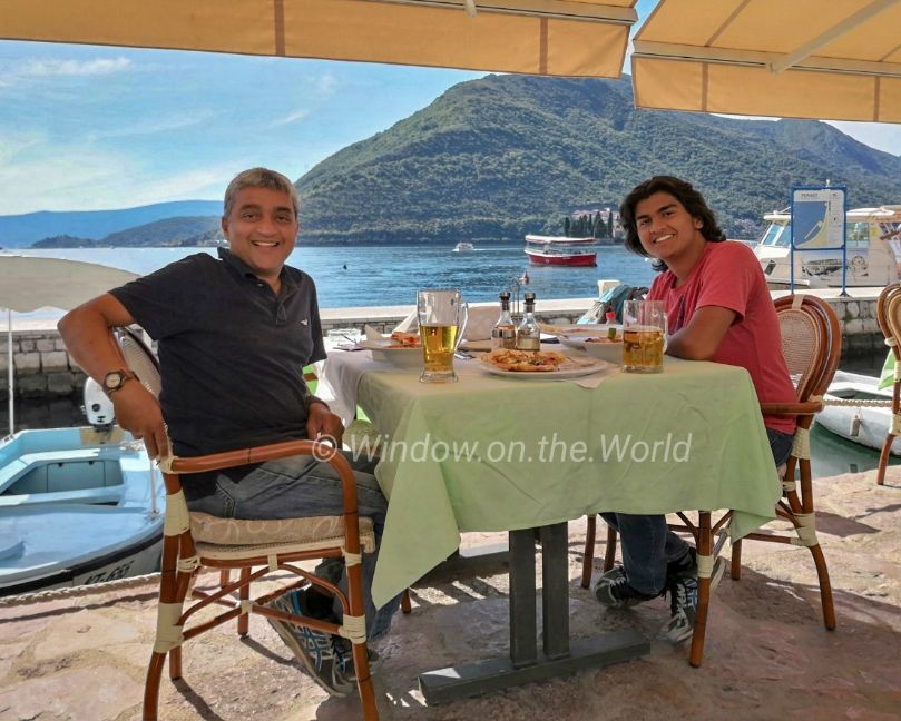 A beautiful old town of Perast.Island of Saint George (Ostrvo Sveti Đorđe) is one of the two islets off the coast of Perast in the Bay of Kotor. Island of Saint George (Ostrvo Sveti Đorđe) contains Saint George Benedictine monastery from the 12th century and the old graveyard for the old nobility from Perast.Our Lady of the Rocks (Gospa od Škrpjela) is one of the two islets off the coast of Perast. It is an artificial island created by bulwark of rocks and by sinking old and seized ships loaded with rocks. According to legend, the islet was made over the centuries by local seamen who kept an ancient oath after finding the icon of Madonna and Child on the rock in the sea during 1452; upon returning from each successful voyage, they laid a rock in the Bay. Over time, the islet gradually emerged from the sea.A gift-shop on Our Lady of the Rocks (Gospa od Škrpjela) islet.Ancient Cross on Our Lady of the Rocks (Gospa od Škrpjela) islet.Beautiful coastal town of Perast from Our Lady of the Rocks (Gospa od Škrpjela) islet.Beautiful coastal towns along the Bay of Kotor, a view from Our Lady of the Rocks (Gospa od Škrpjela) islet.Beautiful coastal town of Perast.Lunch at the bay-side restaurant in Perast, served with locally brewed Montenegrean draft Beer