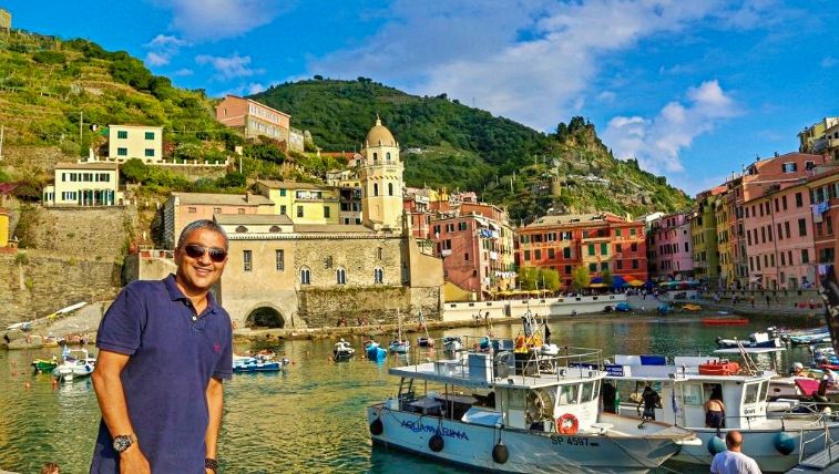 As we had a limited time we took a train from La Spezia to Vernazza, the most beautiful village of the Cinque Terre, with rugged Ligurian coast. Colorful houses surround its small marina. The village has no car traffic, and remains one of the truest “fishing villages” on the Italian Riviera. It is the only natural port of Cinque Terre and is famous for its elegant houses.