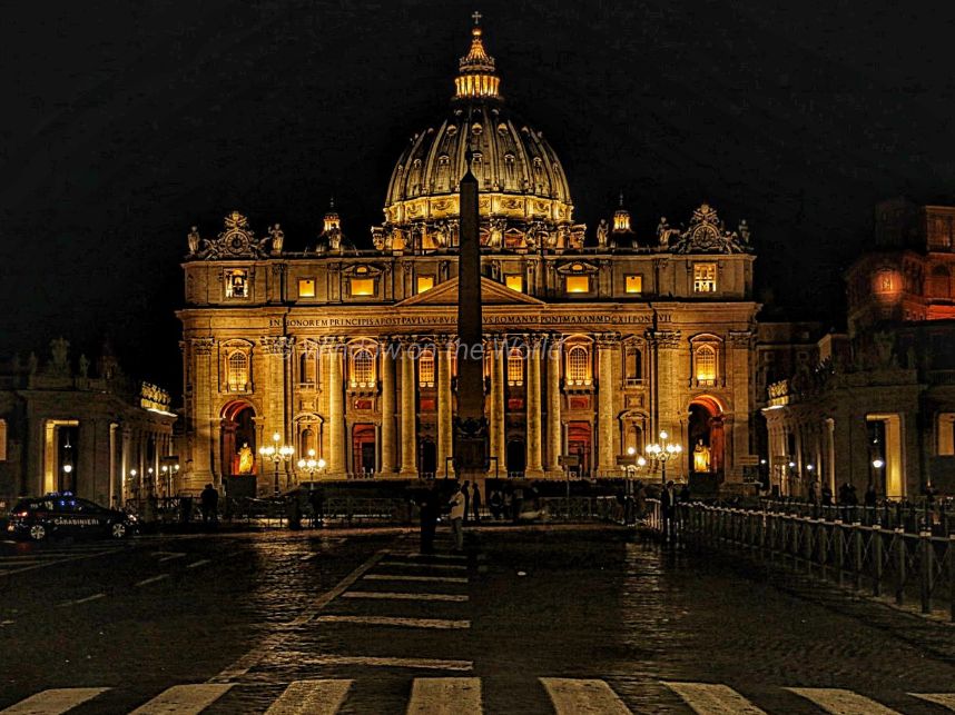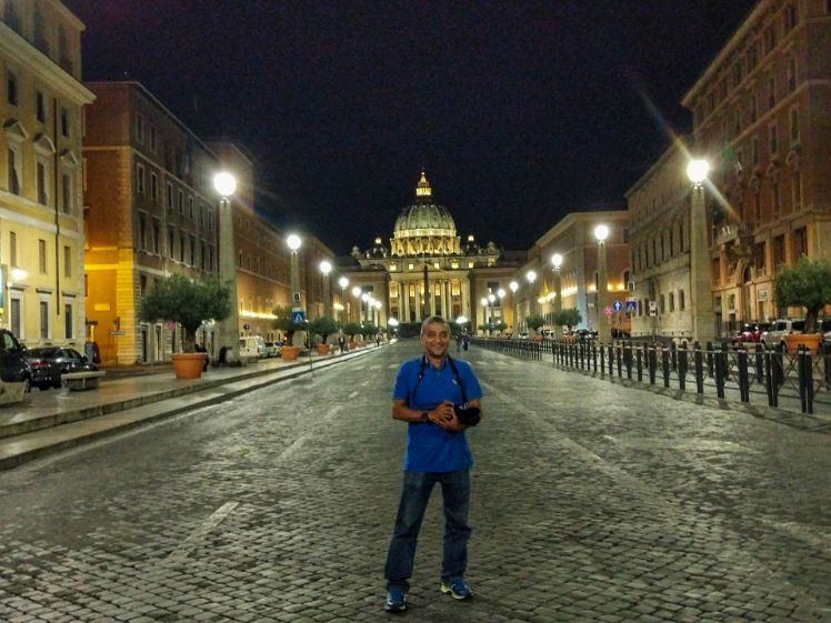 The bronze peacocks on either side of the fountain are copies of those decorating the tomb of the Emperor Hadrian, now the Castel Sant’Angelo.Pope Paul III Coat of Arms on an outer Wall of the Vatican.The Via della Conciliazione, a wide street built by Mussolini after the conclusion of the Lateran Treaties, leads from the River Tiber to the Piazza di San Pietro and gives distant views of St. Peter’s, with the basilica acting as a terminating vista. I took this picture and many other pictures around 2:00 AM in the morning.St. Peter’s Basilica and the piazza at night, or can very early morning around 2:00am.During my visit to the Vatican city, the Roman Catholic Church was celebrating The Extraordinary Jubilee of Mercy. With a volunteer wearing vest with the official logo, shows Jesus, personification of Mercy, carrying on his shoulders a “lost man”.Photo was taken around 2:00 am in the morning and there are still tourists, just like us, still walking the streets of this holy city.A must visit place if you are in Rome. The Vatican Museum (Musei Vaticani) displays works from the immense collection amassed by the Catholic Church and the papacy throughout the centuries including several of the most renowned Roman sculptures and most important masterpieces of Renaissance art in the world. The museums contain roughly 70,000 works, of which about 20,000 are on display. The Sistine Chapel with its ceiling decorated by Michelangelo and the Stanze di Raffaello decorated by Raphael are on the visitor route through the Vatican Museums..The coat of arms of Pope Paul III is visible may places in the Vatican MuseumThe School of Athens, a fresco by the Italian Renaissance artist Raphael, painted between 1509 and 1511 as a part of Raphael’s commission to decorate the rooms now known as the Stanze di Raffaello. Photography is not allowed in The Sistine Chapel.Colorful Gallery ceiling at the Vatican MuseumBronze statue of Hercules of the Forum Boarium, displayed in the Vatican museums. The Statue is slightly over life-sized and in the Hellenistic style of the second century BC.Bramante Staircase; spiral stairs of the Vatican Museums, designed by Giuseppe Momo in 1932Enjoying cold Beer in the St Peter’s Square.A view from Ponte Sant’Angelo of Ponte Vittorio Emanuele II on the Tiber and the St. Peter’s Basilica.A view of Ponte Vittorio Emanuele II on the Tiber and the St. Peter’s Basilica.A view of Ponte Sant’Angelo on the Tiber and the Castel Sant’Angelo. The Mausoleum of Hadrian , built in 123–139 AD, usually known as Castel Sant’Angelo, a towering cylindrical building commissioned by the Roman Emperor Hadrian as a mausoleum for himself and his family. The building was later used by the popes as a fortress and castle, and is now a museum. The structure was once the tallest building in Rome.Ponte Cavour, a bridge over the River Tiber, built between 1896 and 1901, linking piazza del Porto di Ripetta to lungotevere dei Mellini.A magnificent Sunset Afterglow over the Tiber and the St. Peter’s Basilica.A view after dark of Ponte Vittorio Emanuele II on the Tiber and the St. Peter’s Basilica.A view of Ponte Sant’Angelo on the Tiber and the Castel Sant’Angelo.The Castel Sant’Angelo from Ponte Sant’Angelo, a Roman bridge over the Tiber, completed in 134 AD by Roman Emperor Hadrian, to connect the city center to his newly constructed mausoleum. The bridge is now solely pedestrian, and provides a scenic view of Castel Sant’Angelo and the St. Peter’s Basilica.The man in action at 2am in the morning 🙂
