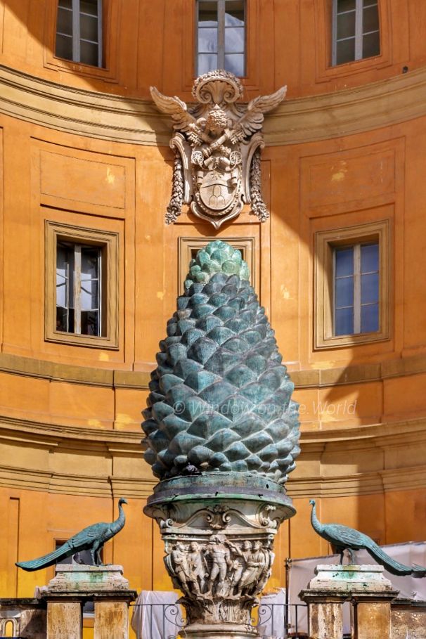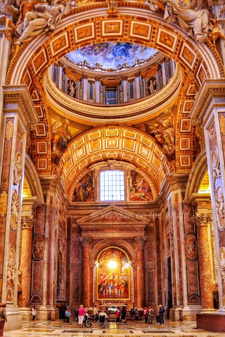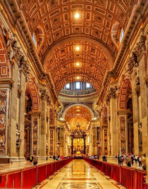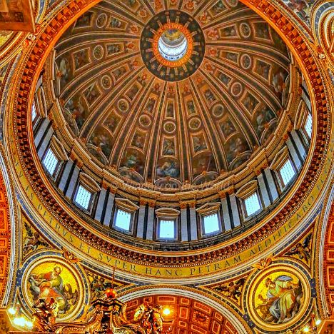 The four columns are 20 meters or 66 feet high. The source of the bronze to make the structure was an issue of contemporary controversy as it was believed to have been taken from the roof or portico ceiling of the ancient Roman Pantheon, though Urban’s accounts say that about ninety percent of the bronze from the Pantheon was used for a cannon, and that the bronze for the baldachin came from VeniceThe dome of St. Peter’s rises to a total height of 136.57 metres (448.1 ft) from the floor of the basilica to the top of the external cross. It is the tallest dome in the world. Multiple Architects, like Bramante, Sangallo, Michelangelo, Giacomo della Porta, and Domenico Fontana, worked on it from 1505 to 1590. Giacomo della Porta and Domenico Fontana brought the dome to completion in 1590,The Tomb of Pope Alexander VII, a sculptural monument designed and partially executed by the Italian artist Gian Lorenzo Bernini. These statues were carved in white marble. Below Alexander, the figure of Death is represented in gilded bronze, shrouded in a billowing drapery of Sicilian jasperThe Pietà, famous work of art by Michelangelo, depicts the body of Jesus on the lap of his mother Mary after the Crucifixion. The sculpture, in Carrara marble, was commissioned for a French Cardinal for his funeral monument, but was moved to its current location in the 18th century. It is the only piece Michelangelo ever signed.St. Peter’s Our Lady of the Column Dome; a small dome over the Chapel of Our Lady of the Column, decorated in 1757 with mosaics from the Litany of Loreto.Fuga d’Attila or Flight of Attila, a colossal marble relief of the Meeting of Attila and Pope Leo (1646–53), by Alessandro Algardi.The Vatican obelisk, made of a single piece of red granite weighing more than 350 tons, was erected for an Egyptian pharaoh more than 3,000 years ago. The obelisk, originally brought to Rome from Egypt by Caligula in 37 AD. in 1586, it was moved to its present location in St. Peter’s Square, where it does double duty as a giant sundial.One of the two fountains which form the axis of the Piazza di San Pietro, (St. Peter’s Square).The Swiss Guard, recognizable by its armor and colorful Renaissance-era uniforms, has been protecting the pontiff since 1506. That’s when Pope Julius II, following in the footsteps of many European courts of the time, hired one of the Swiss mercenary forces for his personal protection. The Swiss Guard’s role in Vatican City is strictly to protect the safety of the pope. The force is entirely comprised of Swiss citizens.A Swiss Guard In Vatican City standing at the entrance of a doorThe Fontana della Pigna or simply Pigna (“The Pine cone”) is a former Roman fountain built in the 1st century AD, which now decorates a vast niche in the wall of the Vatican facing the Cortile della Pigna, Composed of a large bronze pine cone almost four meters high which once spouted water from the top, the Pigna originally stood near the Pantheon next to the Temple of Isis. It was moved to the courtyard of the Old St. Peter’s Basilica during the Middle Ages and then moved again, in 1608, to its present location.