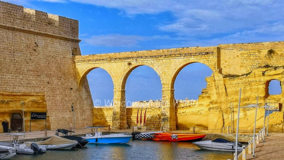 The city of Valletta is built on a peninsula between two natural harbors and fortified with massive stone walls, which even withstood heavy bombing during the Second World War.