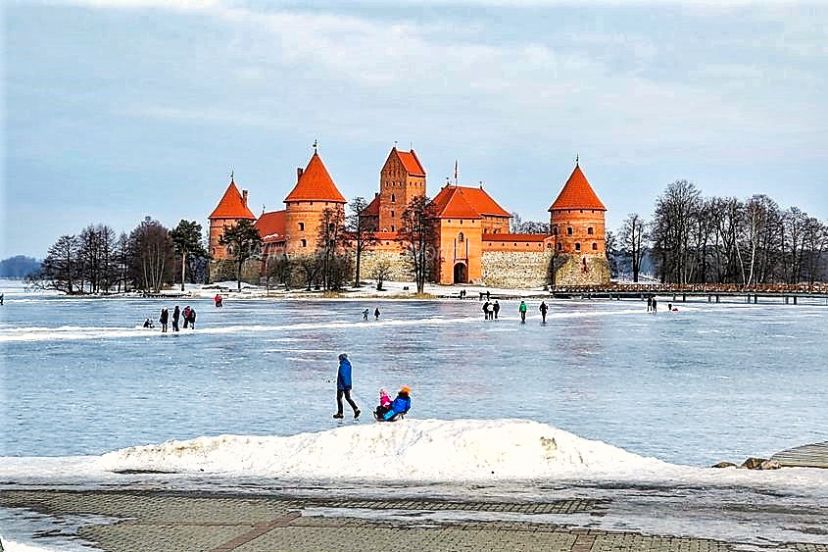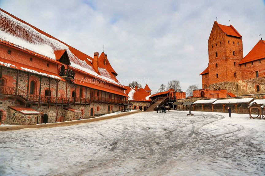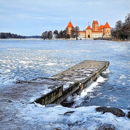 Wel come to Trakai, a former capital city of Grand Duchy of LithuaniaColourful Karaim wooden houses on Karaimu gatve, the main street of the town that leads to the Galve lake. They usually have 3 windows on the front – it is believed that the first one is for God, the second for the host and the third one for guests. Karaims are a small Turkic-speaking religious and ethnic group resettled to Trakai by Grand Duke Vytautas in 1397 and 1398 from Crimea.A beautiful wooden house by the lake in Trakai.Trakai Island Castle, the former residence of the Grand Dukes, originally constructed during 14th century, and rebuilt during the 1950s – 1960s by Lithuanian initiative. The Castle is located on an island in Lake Galvė, the deepest (46.7 m) lake with 21 islands.Locals are enjoying winter sports on Lake Galvė in front of the Trakai Island Castle.Inner yard of the Trakai Island Castle. On the right – the Ducal Palace and its donjon. Castle walls and corner tower of the Trakai Island Castle.The inner yard of the Ducal palace and its wooden stair galleriesA chapel in the Ducal Palace of the Trakai Island Castle,Throne in the Ducal Hall, the largest Hall in the Palace.The Palace is decorated with glazed roof tiling, burned bricks, and stained glass window.