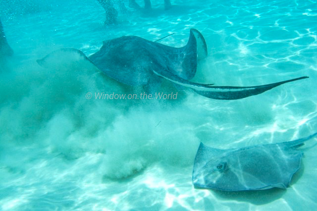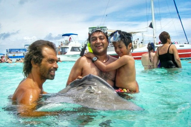 While in Grand Cayman, we visited the Stingray City, a series of shallow sandbars off the northwest corner of Grand Cayman. It is a tourist attraction, where southern stingrays are found in abundance and visitors can pet and interact with the animals